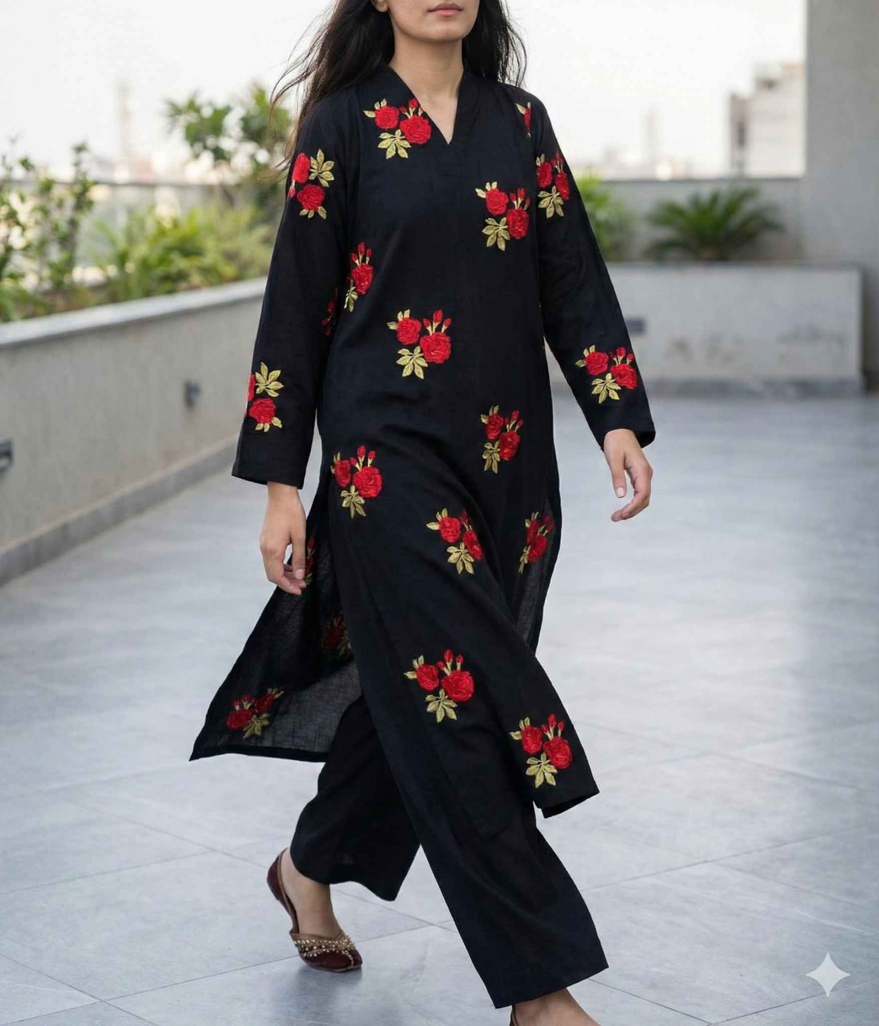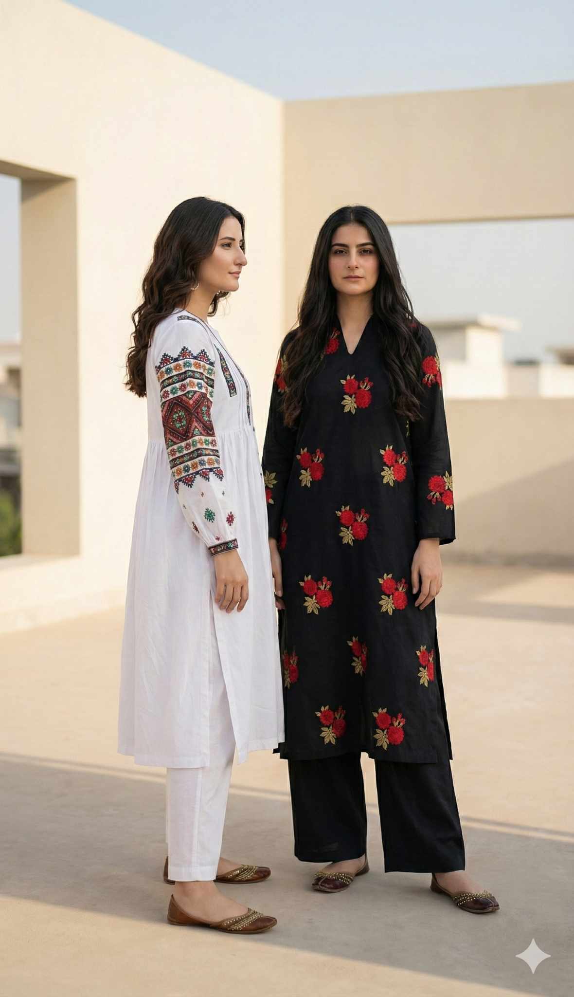 A thoughtfully designed 2-piece ensemble that reflects effortless elegance. Adorned with subtle embroidery and tailored in a relaxed silhouette, this outfit offers comfort, grace, and timeless appeal—ideal for everyday wear with a refined, sophisticated touch.