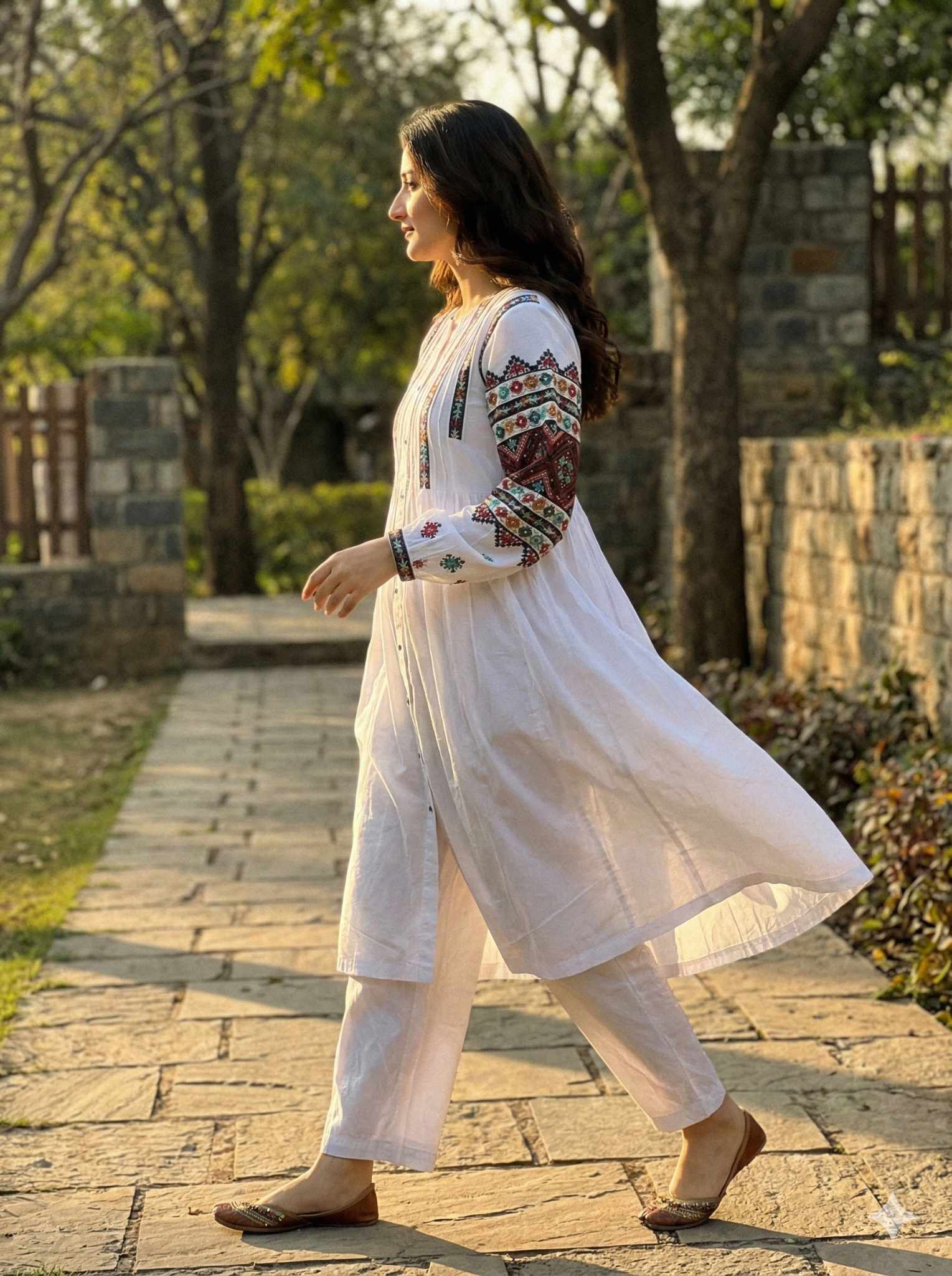 Celebrate timeless artistry with our Signature Embroidered Two-Piece. Designed in a flowy silhouette, this outfit features intricate multicolor embroidery across the sleeves and front, blending traditional craftsmanship with contemporary elegance. The button-down detail adds sophistication, while the airy fabric ensures effortless comfort. Paired with matching trousers, this signature set reflects exclusivity and style—perfect for making a statement on any occasion.
